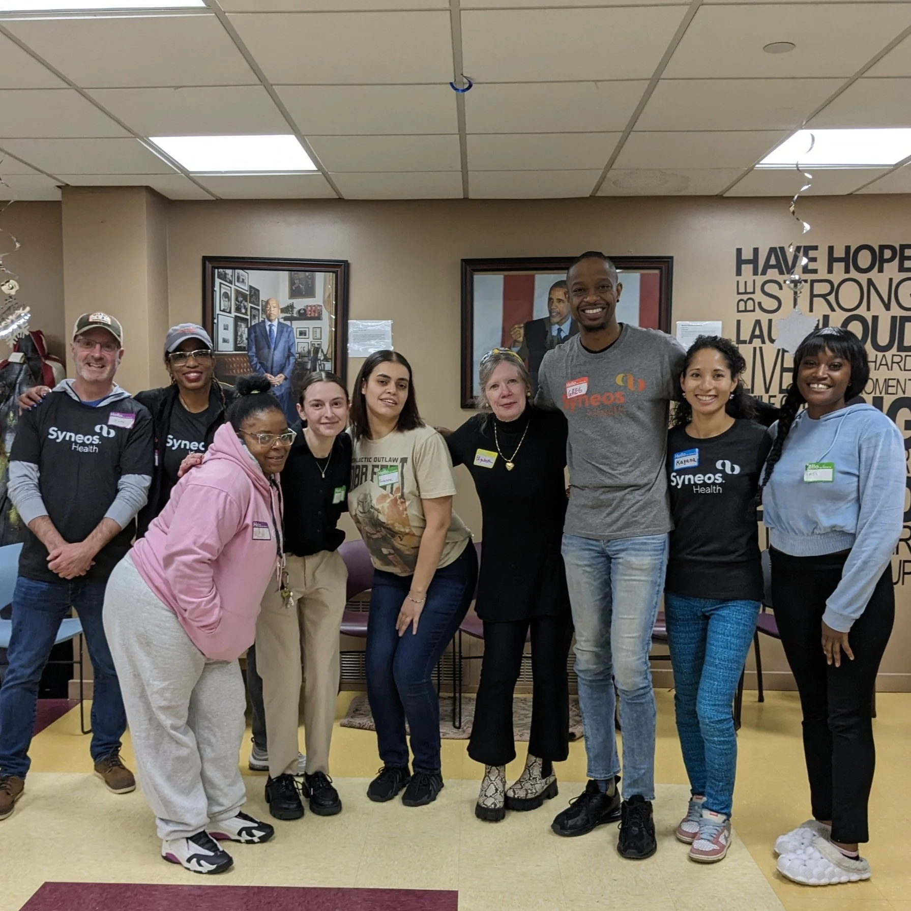 We are so grateful to have such generous corporate partners, like Syneos Health, to spend their holiday preparing and sharing a delicious meal with our clients while honoring Dr. King's legacy in a beautiful way.